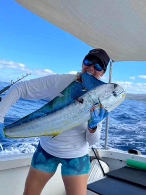 Gina grew up on a small family farm in western Maryland and as soon as she could hold a fishing pole, her love and passion for the sport was born. While attending college in Florida where she focused on intercoastal ecosystems and fisheries, her love of fishing turned into a passionate drive to work on boats and fish for a living. In December 2015, she made the move to Maui and started working on a boat. In April 2023 she landed her dream fishing job and now her joy is rarely contained with each day on the water and each fish landed!